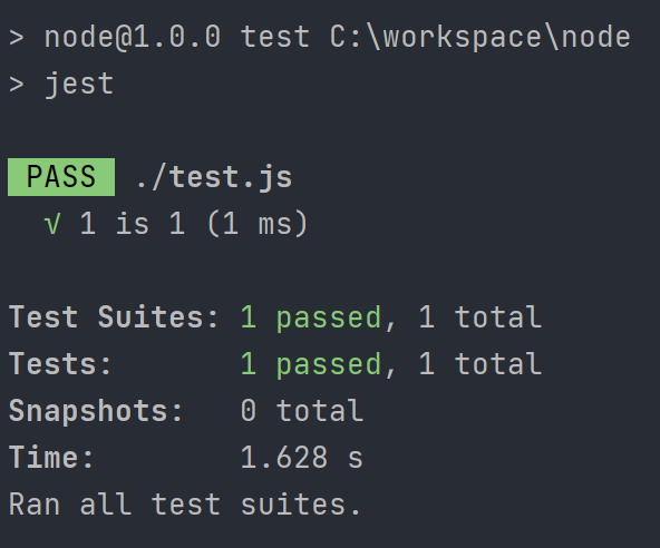 이후 test.js라는 파일을 만들고 npm test를 실행해보자.
